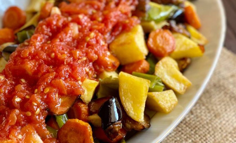 - Havuç, patates ve kırmızı biberi ekleyin, birkaç dakika daha kavurun.