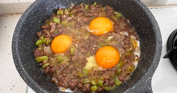 • Kıymayı kavrulurken iyice karıştırarak, suyunu salıp çekene kadar pişirin. Bu, kıymalı yumurtanın daha lezzetli olmasına katkı sağlar.