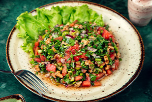 Lezizhane’nin özel mezelerinden biri olan kısır, ferahlatıcı ve doyurucu bir lezzet sunuyor. İnce bulgur, taze yeşillikler, domates, salatalık ve özel baharatlarla harmanlanarak hazırlanan bu mezemiz, her bir lokmada kendinizi Akdeniz’in taptaze havasında hissettirir. Limonun ekşi tadı, baharatların aroması ve sebzelerin çıtır dokusu, kısırı vazgeçilmez kılar. Üzerine taze maydanoz ve nar ekşisi gezdirilerek sunulan kısır, her bir ısırıkta sizi lezzetin zirvesine taşır. Lezizhane’de bu nefis mezeyi denemek için sizi bekliyoruz.