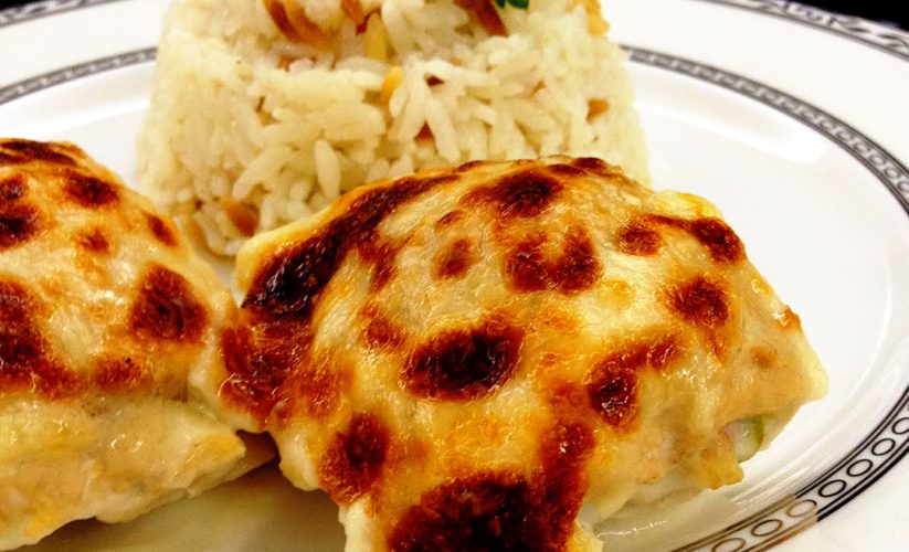 - Hazırladığınız iç harcı yufkanın ortasına yerleştirin, üzerine beşamel sosu dökün.